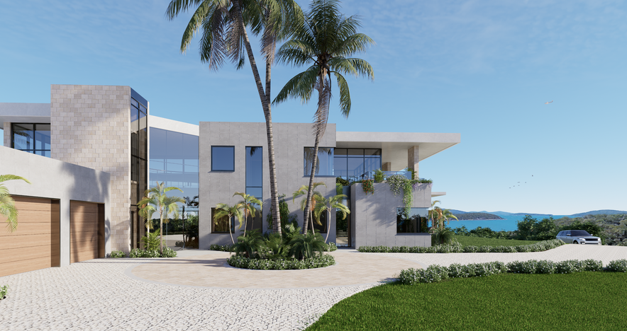 With a design referencing the surrounding cascading rocks and hills, Villa Vista sits atop Mount Vista in Bloomsbury with 360° views overlooking the Whitsunday Islands, Midge Point, Swizet Creek, the local airfield, and Coastlines North to South. The plan consists of an E-W corridor, connecting the house, viewing the sunrise and sunset between the pod-like rooms.